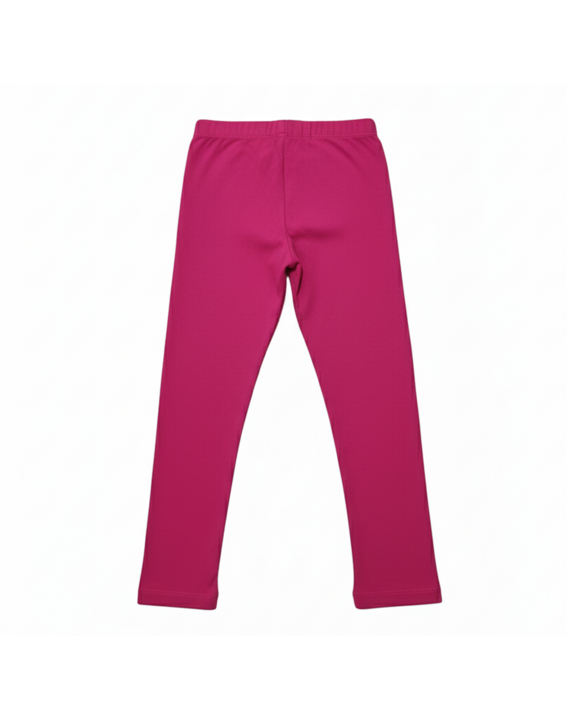 Leggings de niña en color fucsia brillante (rosa fuerte), con cintura elástica para un ajuste cómodo. Es una prenda básica en un color vibrante, ideal para añadir un toque de alegría a cualquier conjunto.