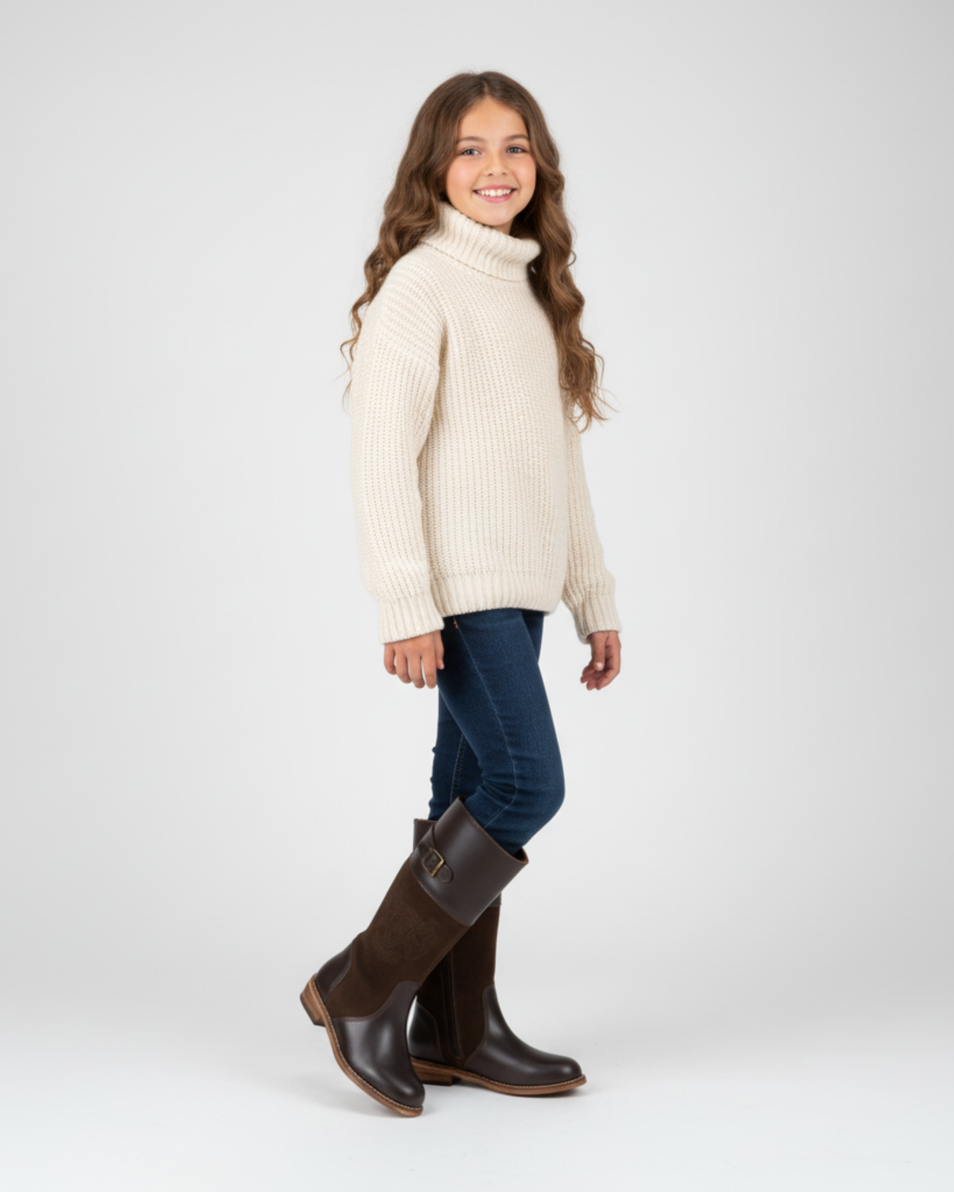 Esta bota de media caña alta, perfecta para el invierno, combina la durabilidad de la piel lisa en la parte inferior con la calidez y textura del ante en la caña. Presenta detalles de diseño tradicional, como una hebilla ajustable en la parte superior y un escudo sutilmente grabado en el ante, dándole un aire ecuestre o campero muy distinguido. Es la elección ideal para mantener los pies abrigados con un estilo clásico y robusto. Para un look de campo o un estilo casual-elegante, llévalas con jeans ajustados (metidos por dentro de la caña) o con una falda de lana y calcetines gruesos.