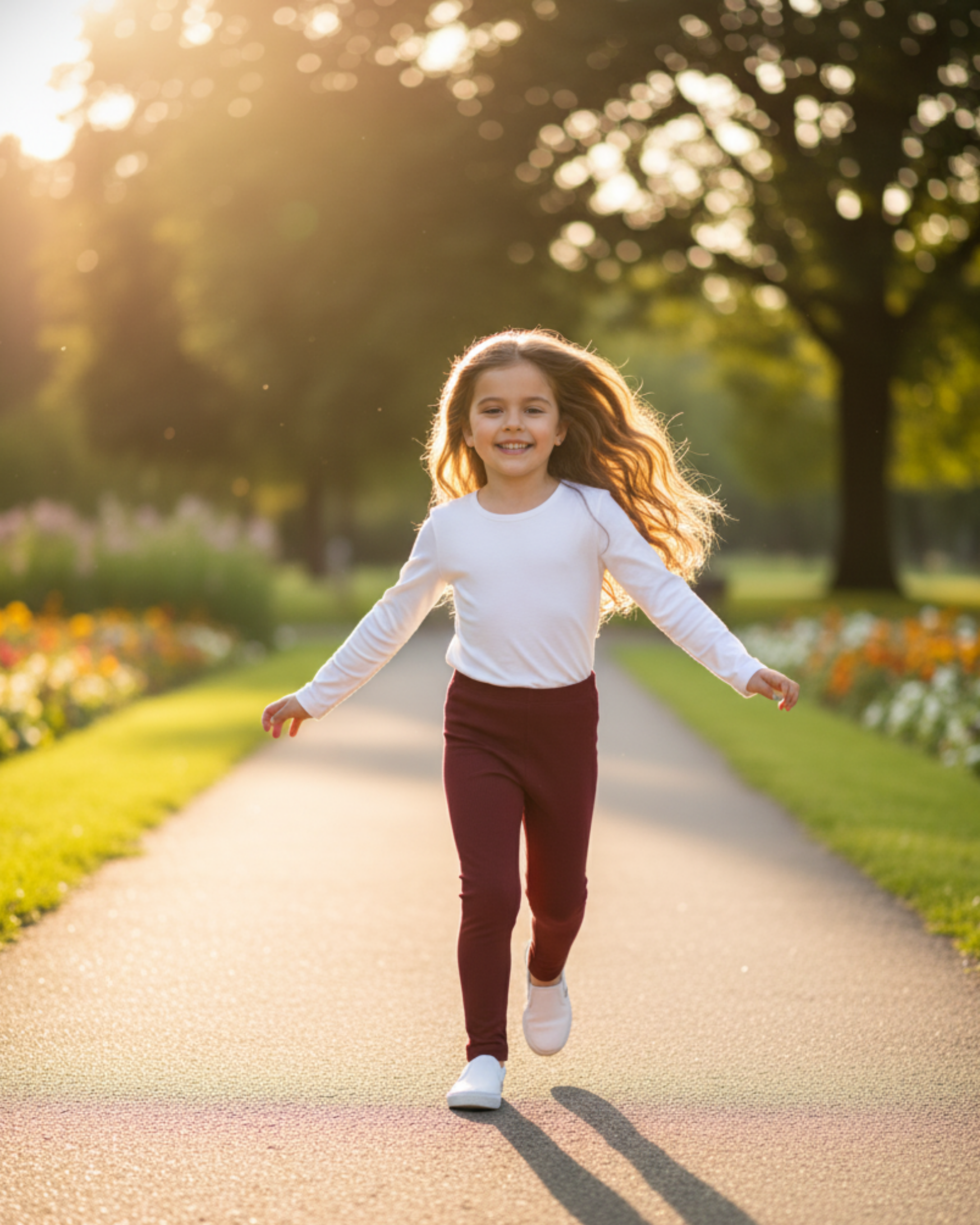 Leggings de niña en color borgoña/vino, confeccionados en tejido de canalé con cintura elástica. De corte ajustado y liso, son una prenda cómoda y versátil para combinar con cualquier look casual o de invierno.